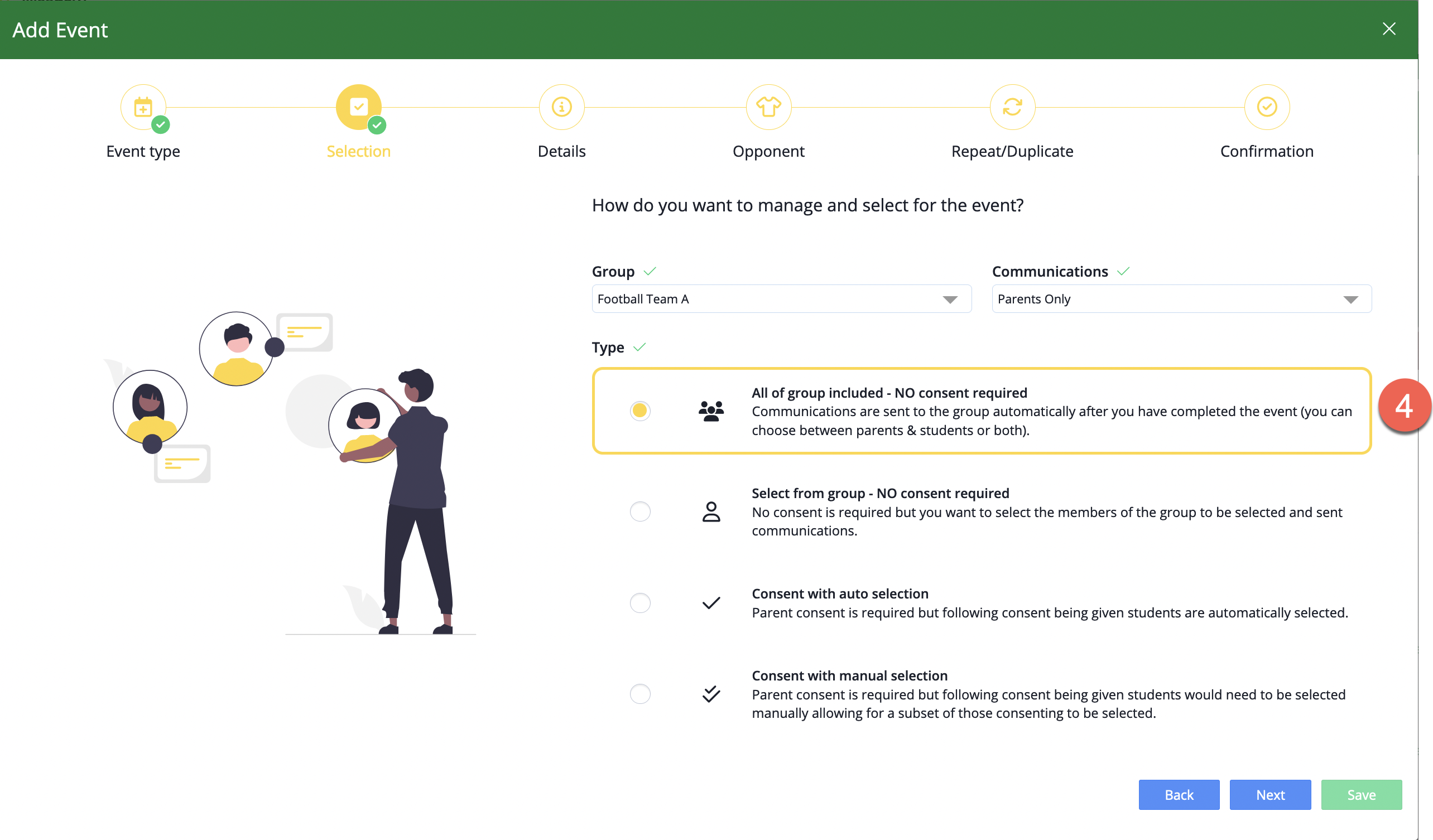 Sports Portal - Adding a Sports Fixture for all group members (Without Parent Consent)