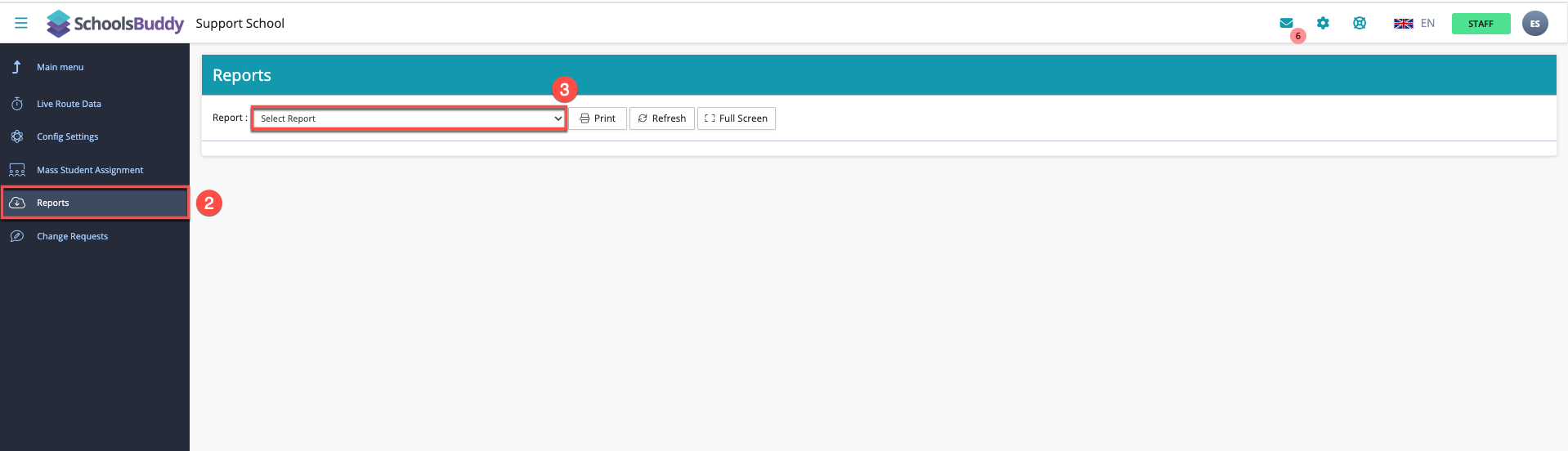 - Select your required report from the dropdown menu at the top of the page. Please note, more reports will be added and you may ask about specific reports here.