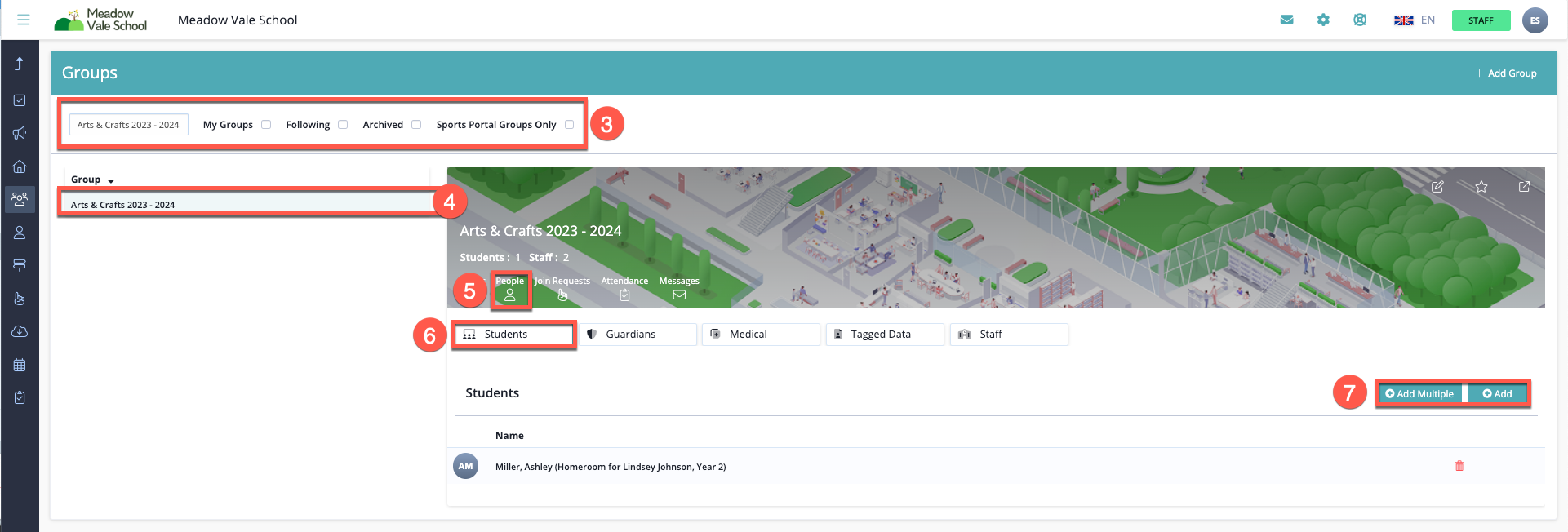 - Use the filters to find the correct group. If you are searching for a group that you are not a member of staff, you must unclick the My Groups toggle box.