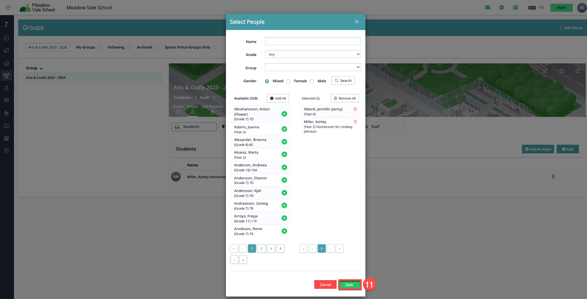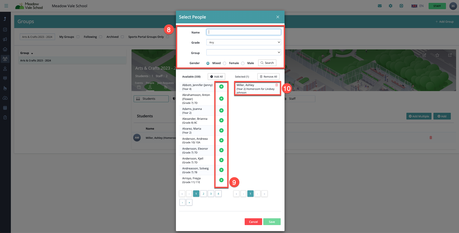 - If you click Add Multiple, you will be able to search for students either by Name, Grade, Group or Gender.