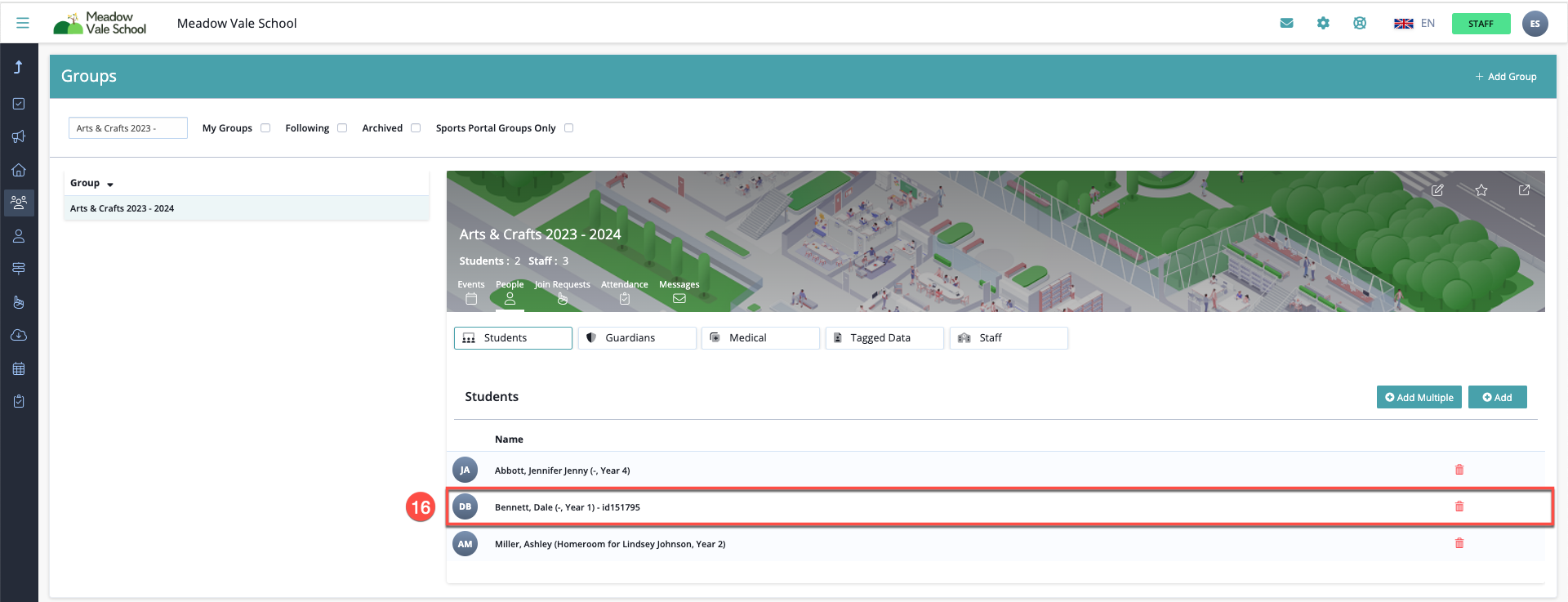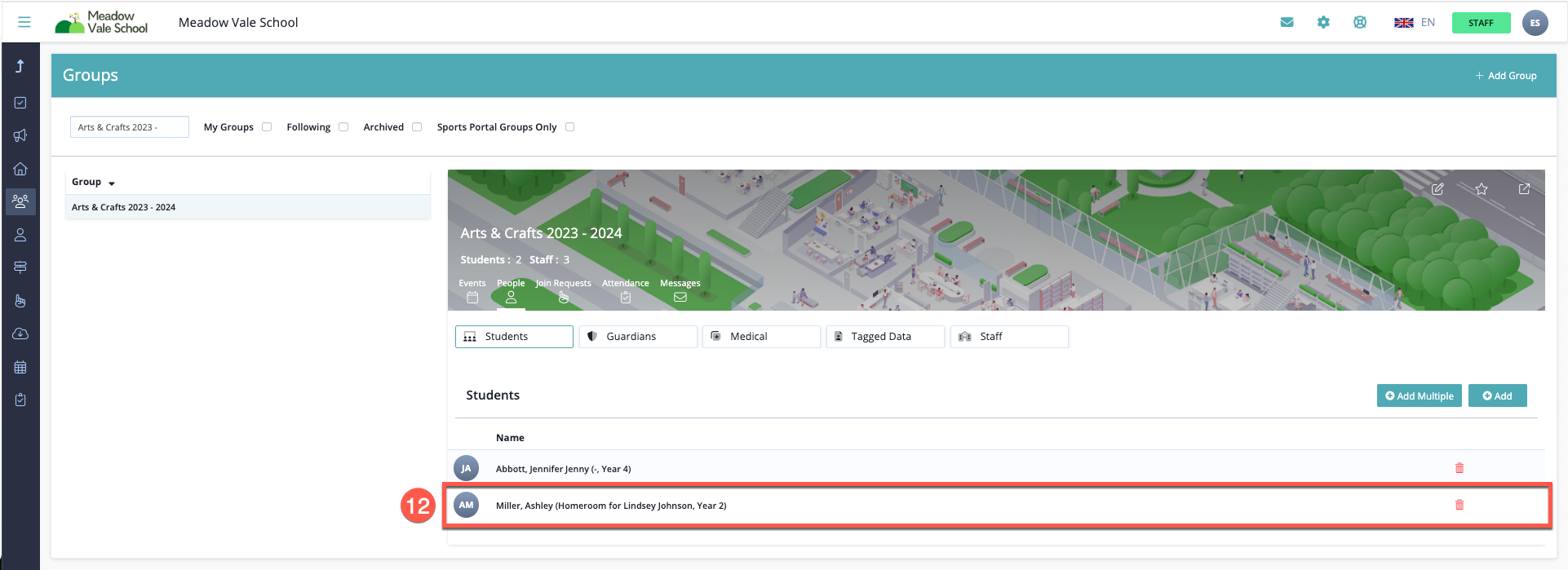 - Click on the Red Trash icon on the right-hand side for the students you wish to remove from the group.