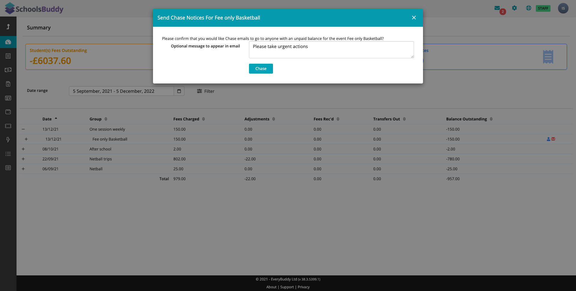 To learn more about chasing fees within SchoolsBuddy please click here.