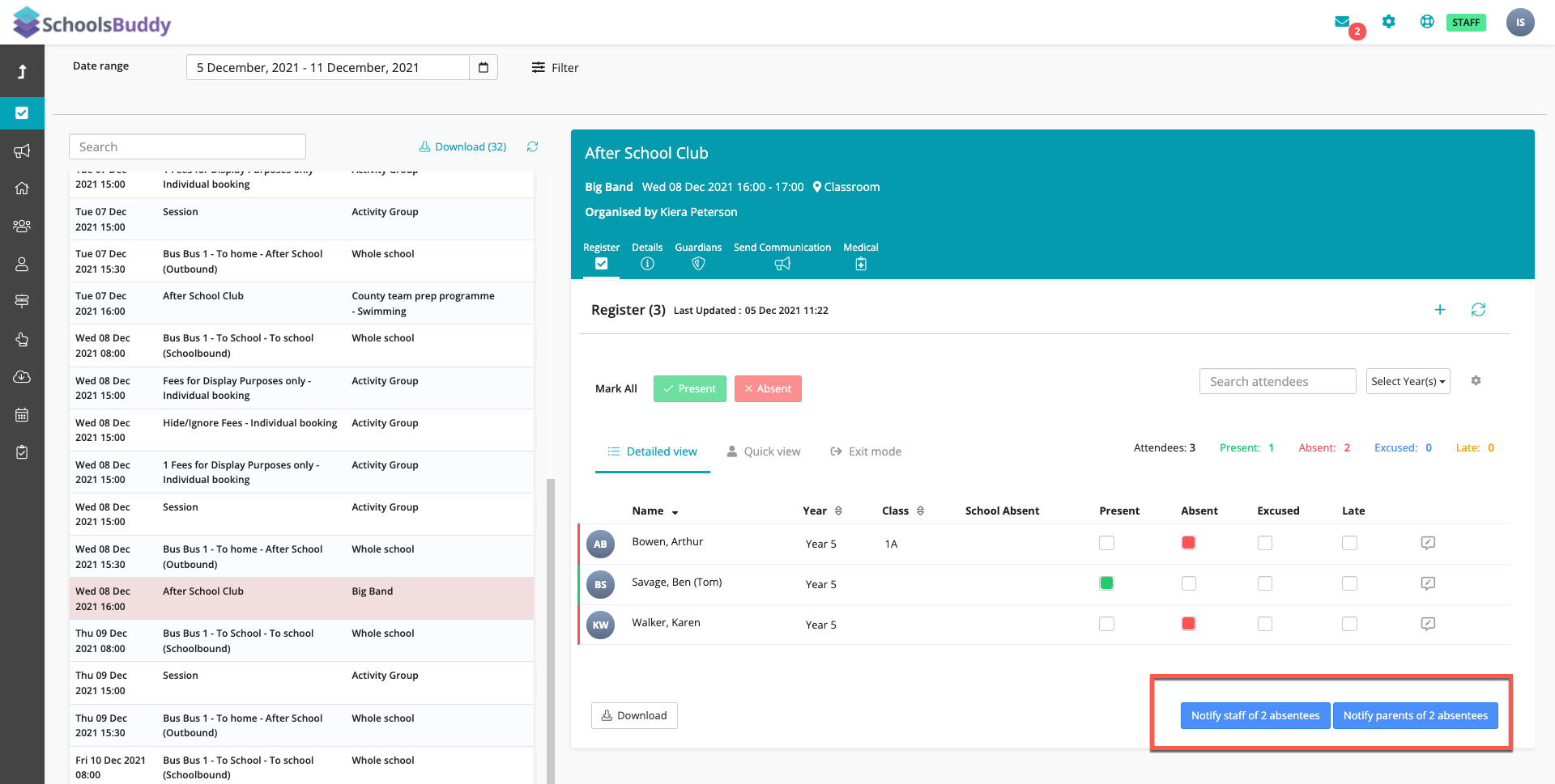 - They will also receive a push notification if they have the SchoolsBuddy mobile app enabled