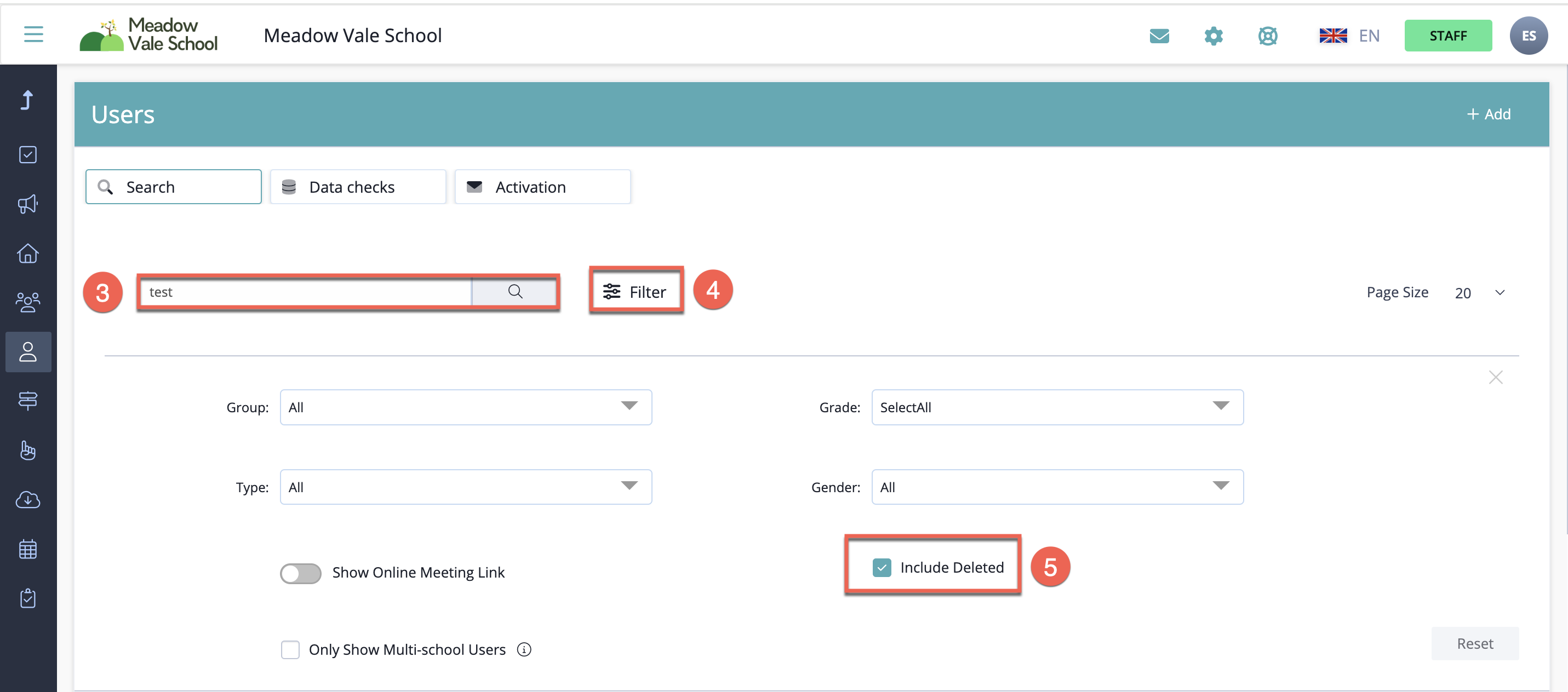 - Search for the deleted student using the 'Search Bar'