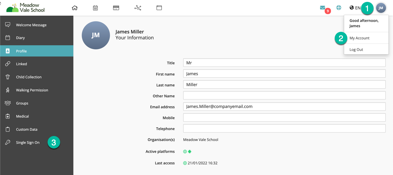 Ask parents/students/staff to log in and select My Account from their Profile icon: