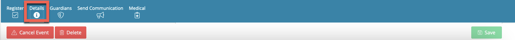 - Details contains information about the event. From here you can edit, delete or cancel the event.