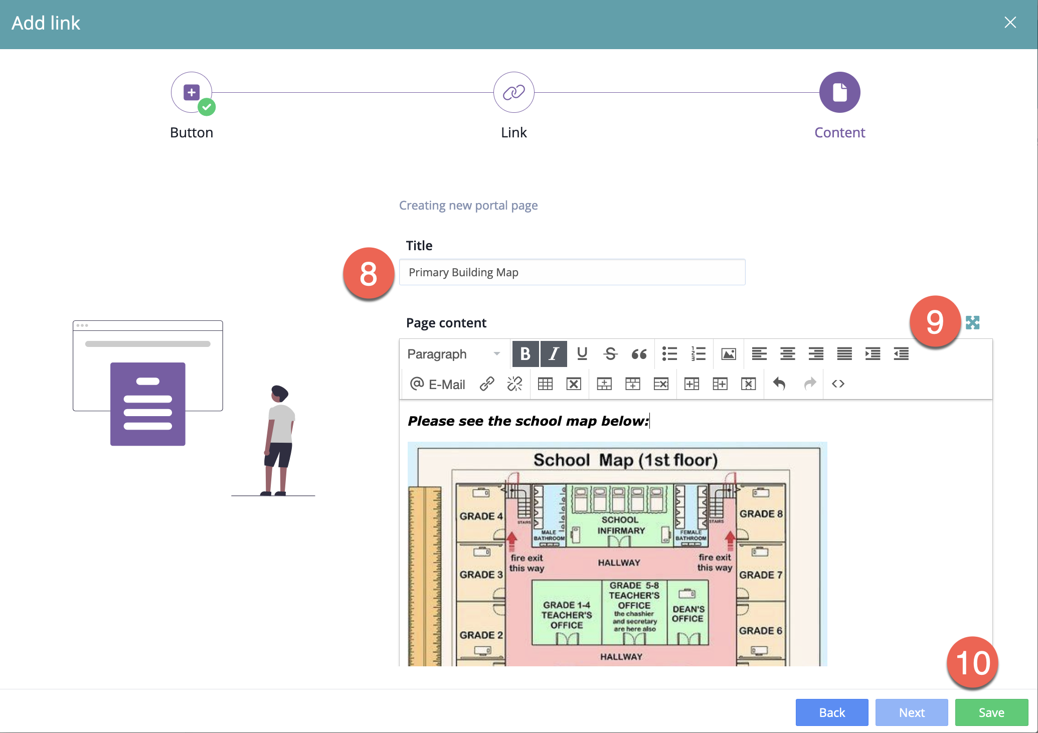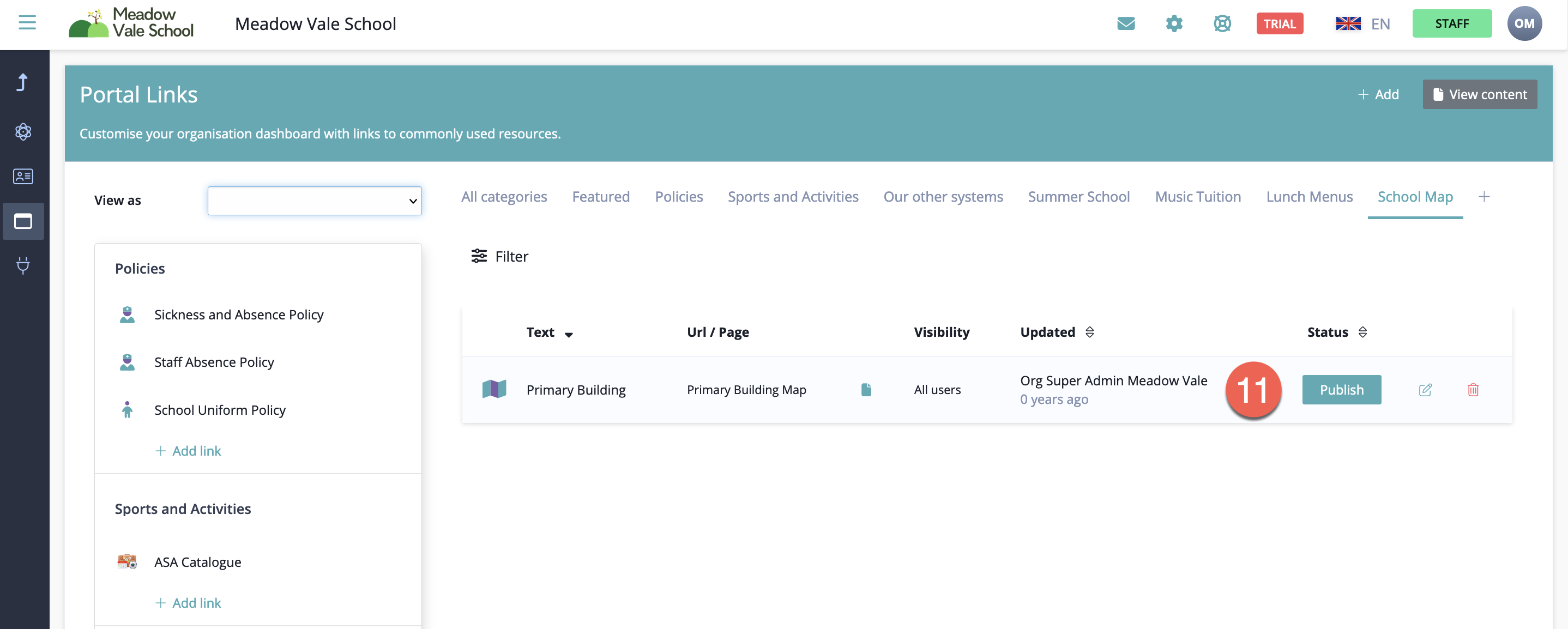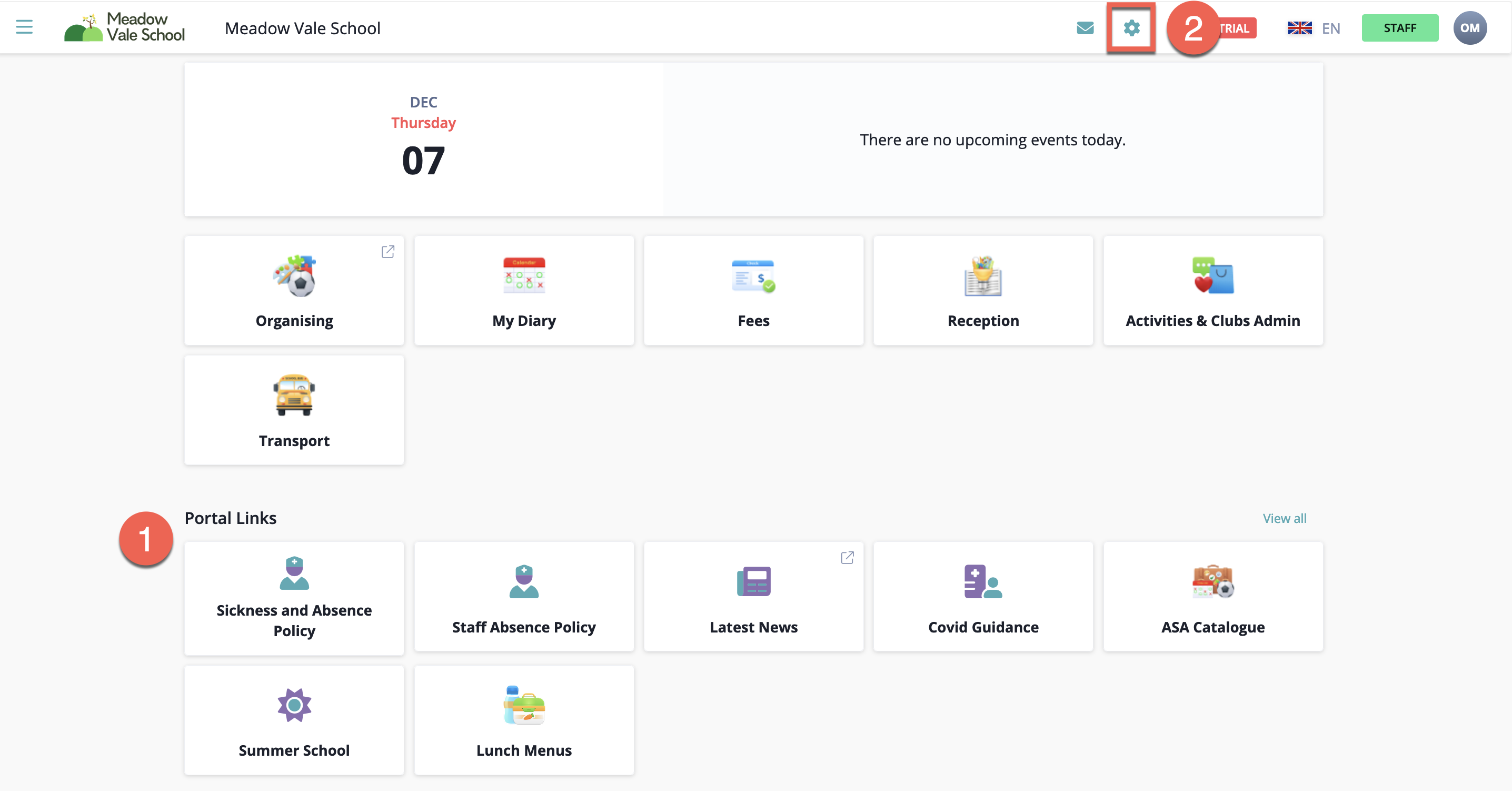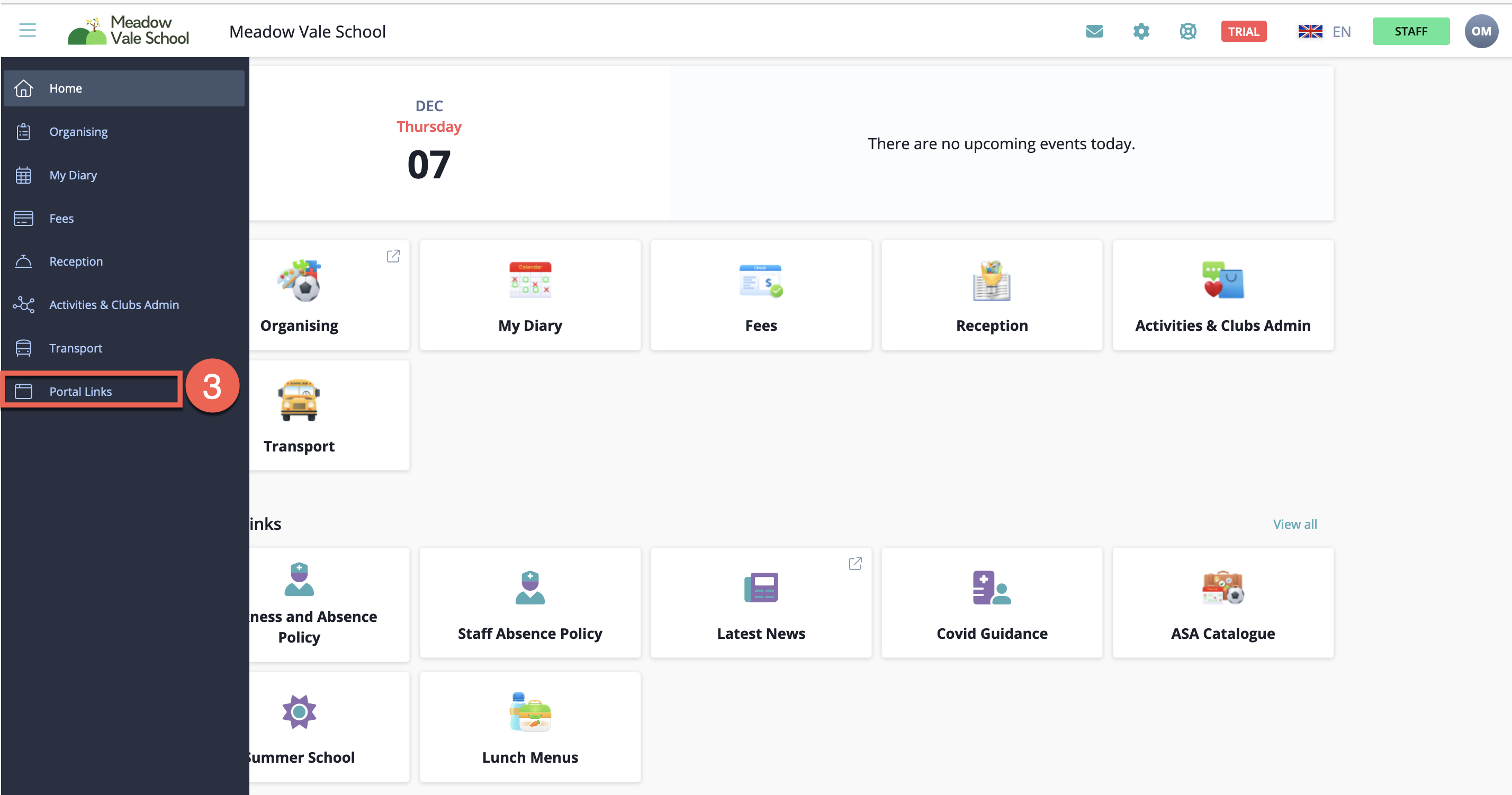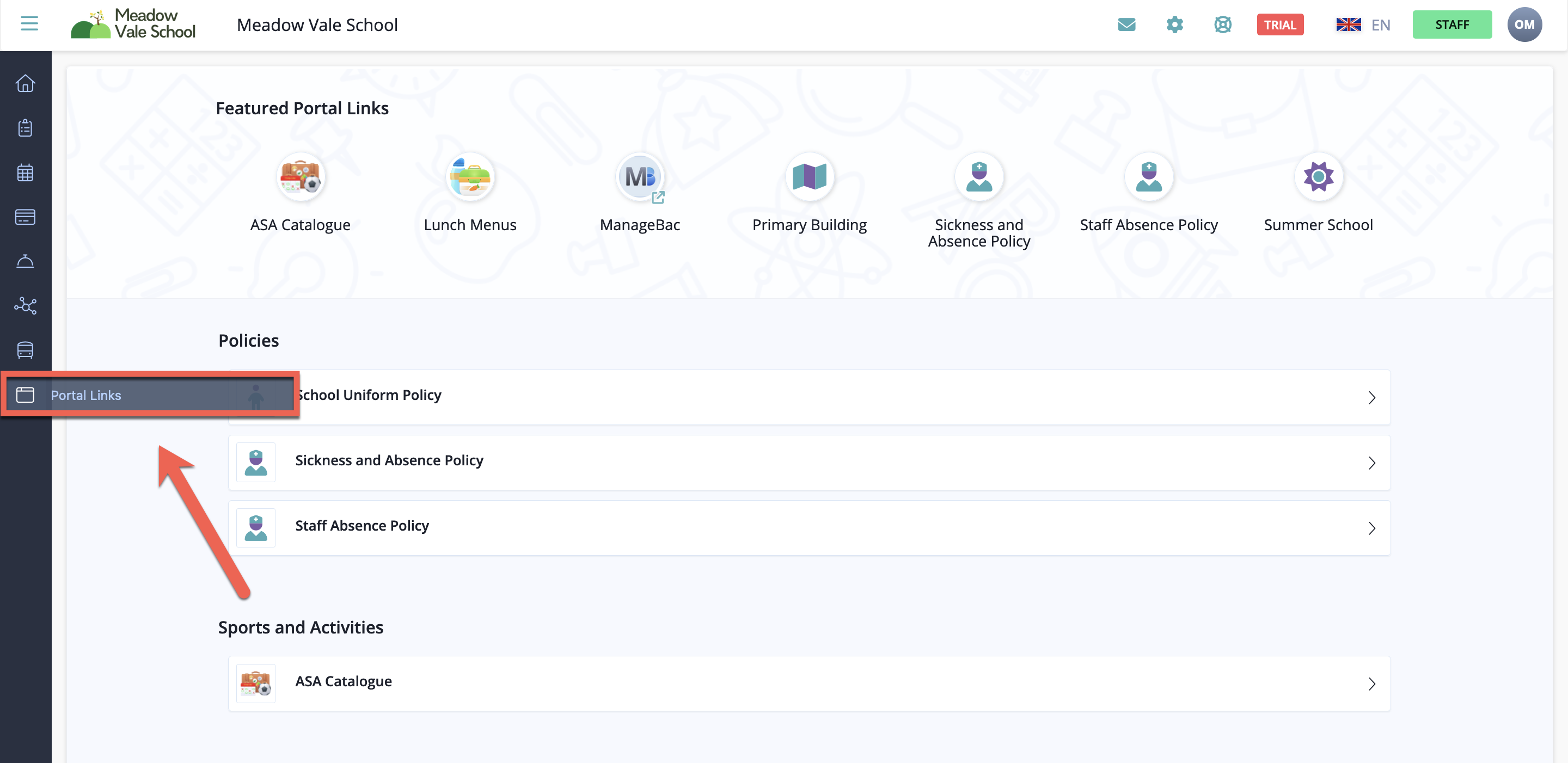 Portal link is a quick access section on the dashboard to alert parents, staff or students to helpful information and school policies. This is a flexible feature that you can use for almost anything!