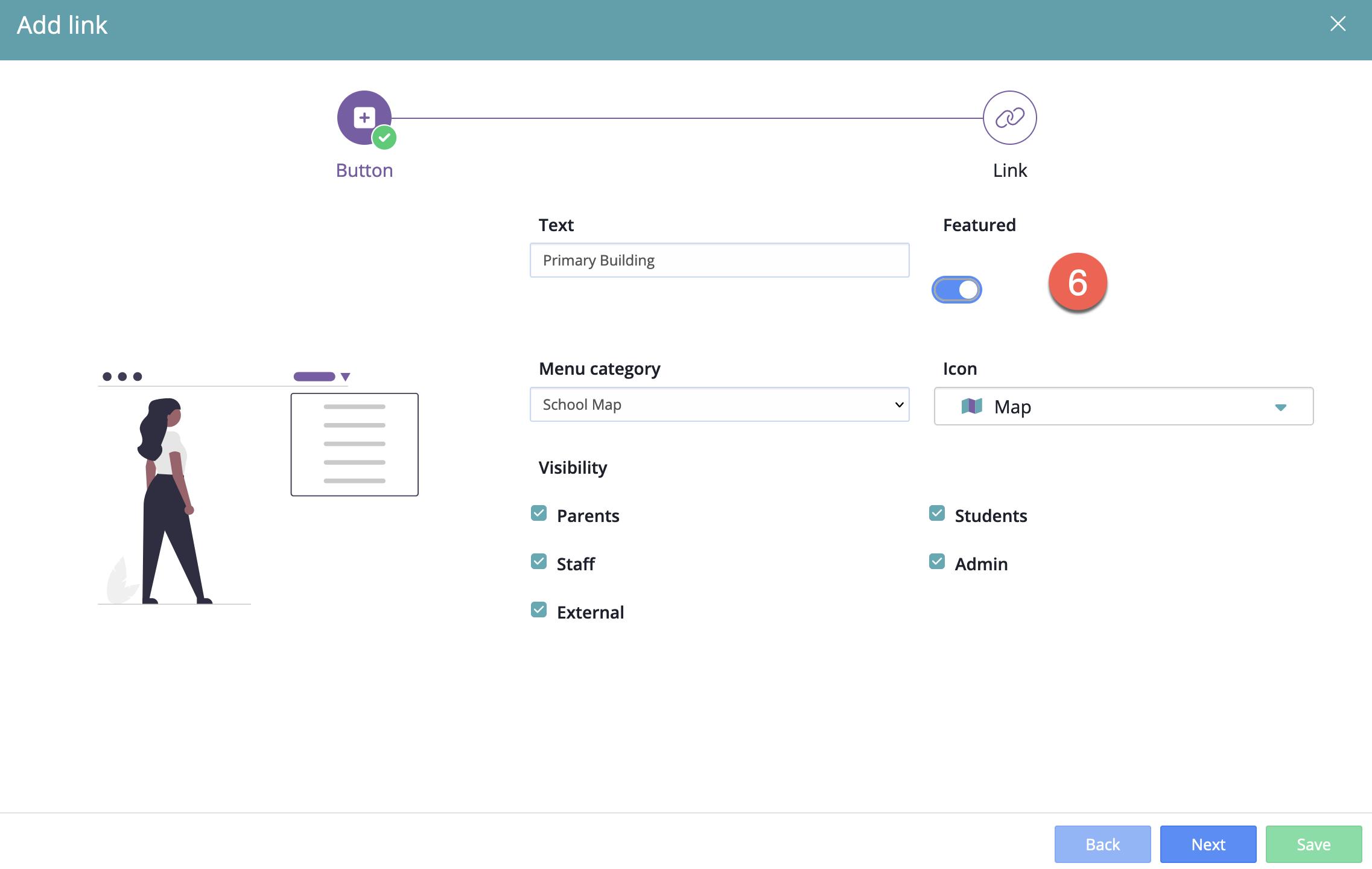 - Add an external URL (for example, link to your School website, a social media page or another school system)