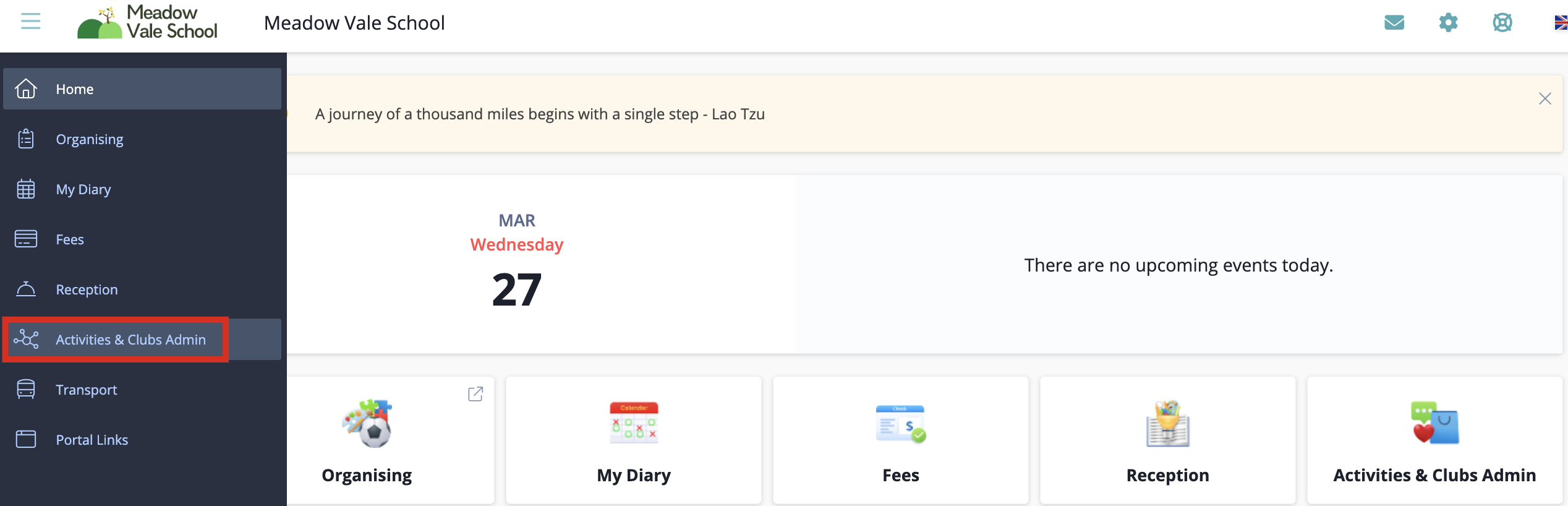 - Click on 'Activities & Clubs' (This may be named differently depending on your school's settings.