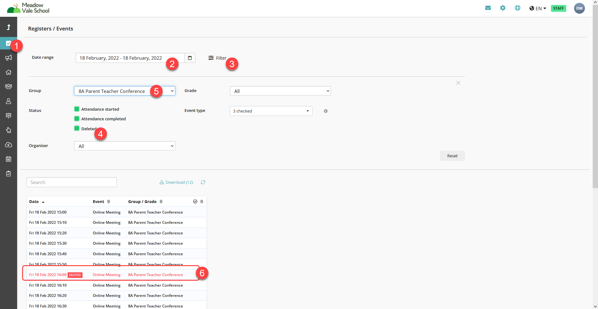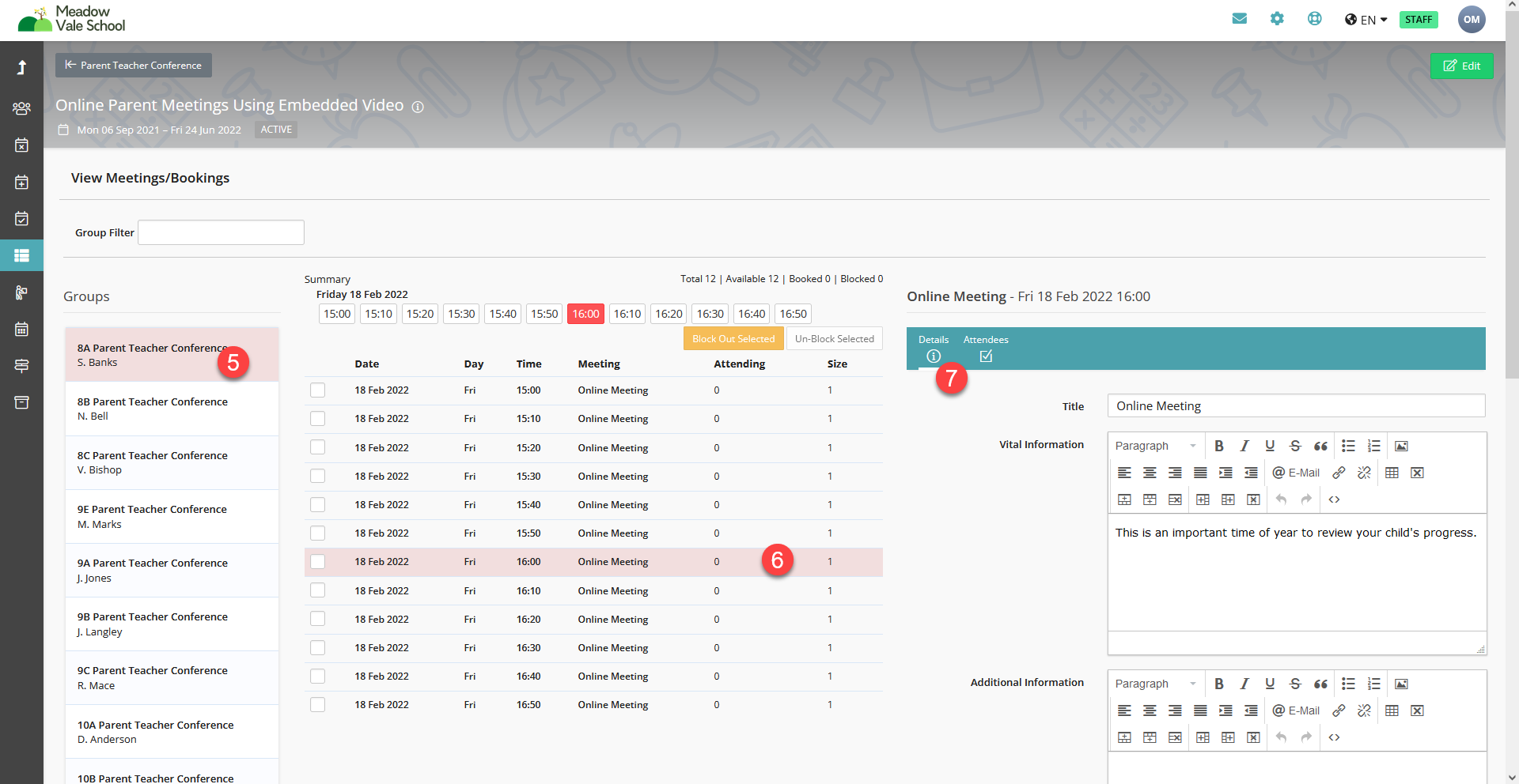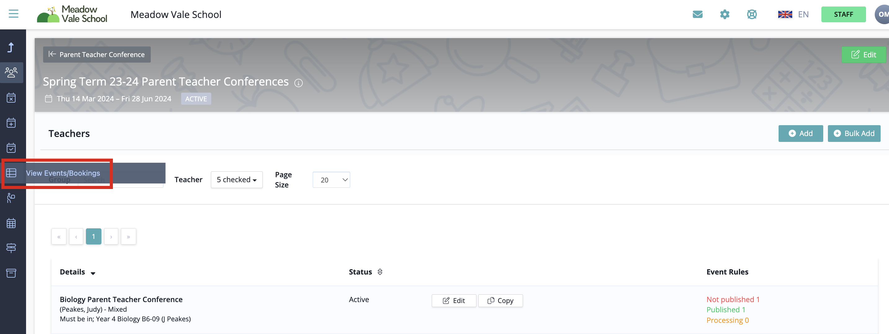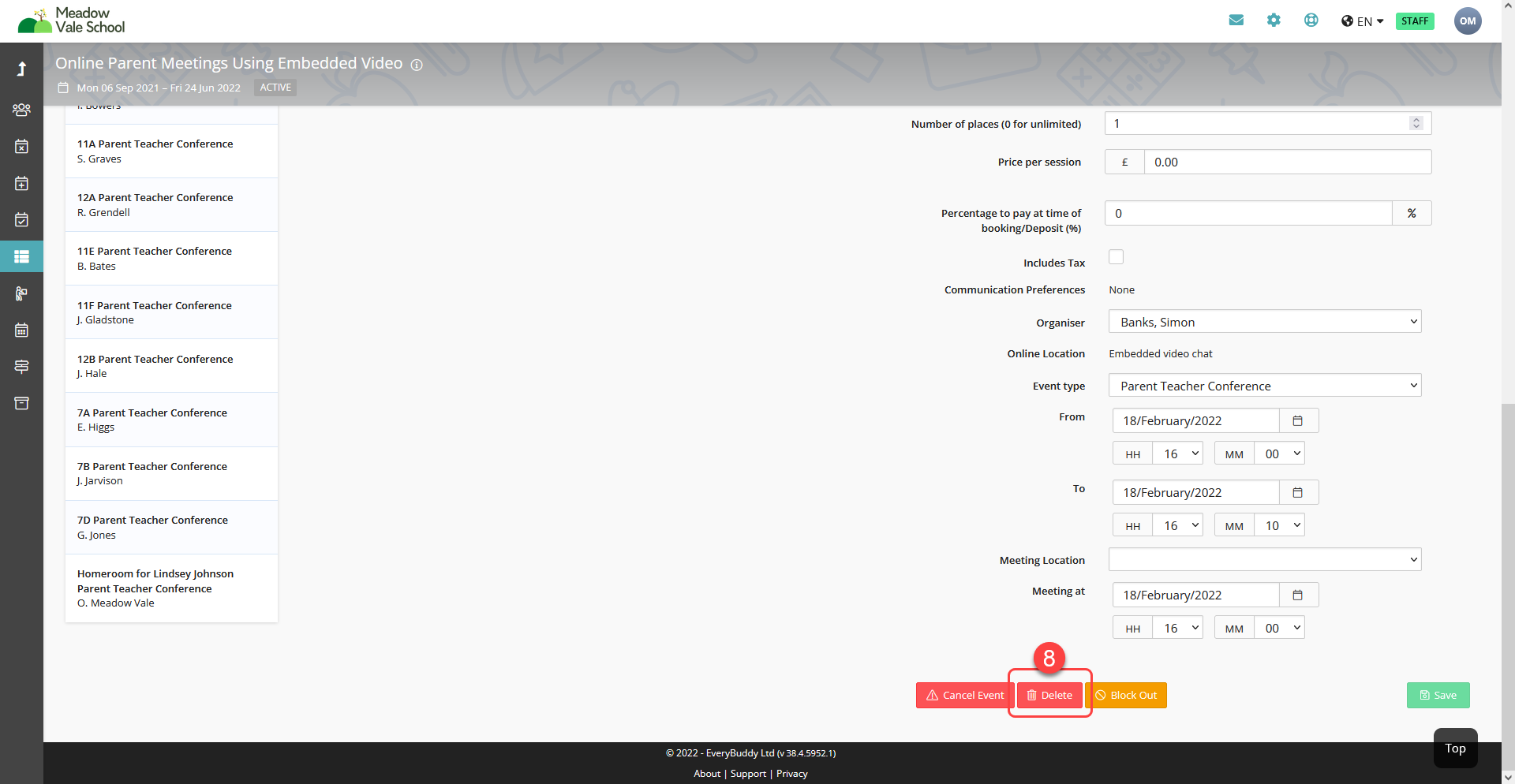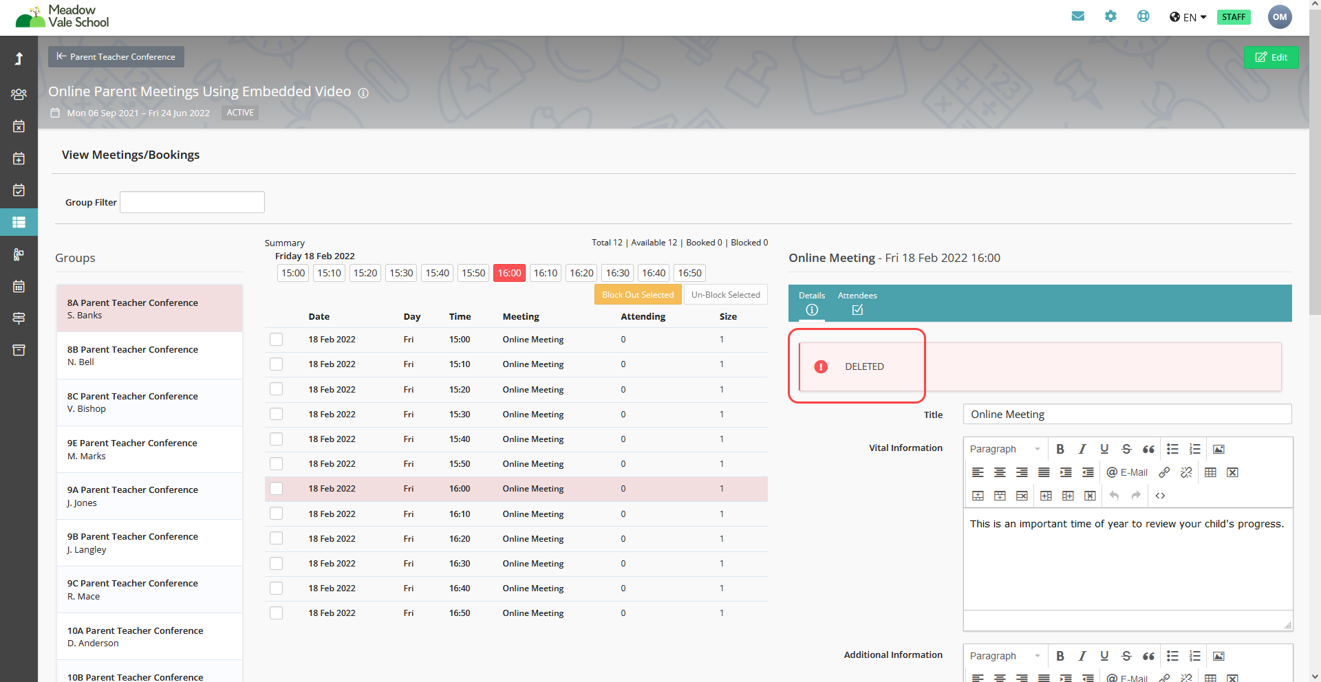 Also, the deleted events will no longer appear under View meetings / bookings for the PTC.