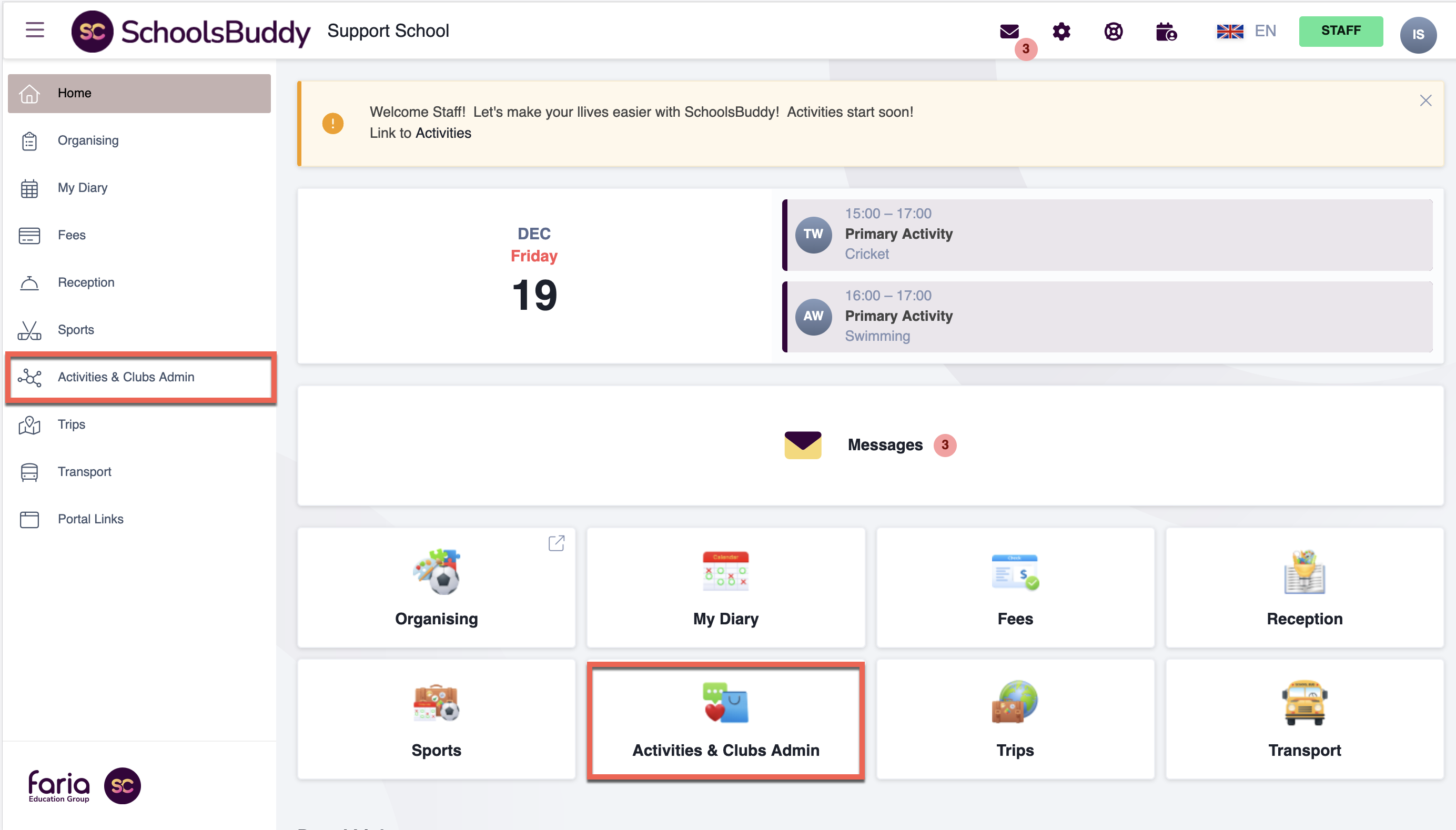 Select the Activities & Clubs tab. (This may be labelled differently due to your School's preferences)