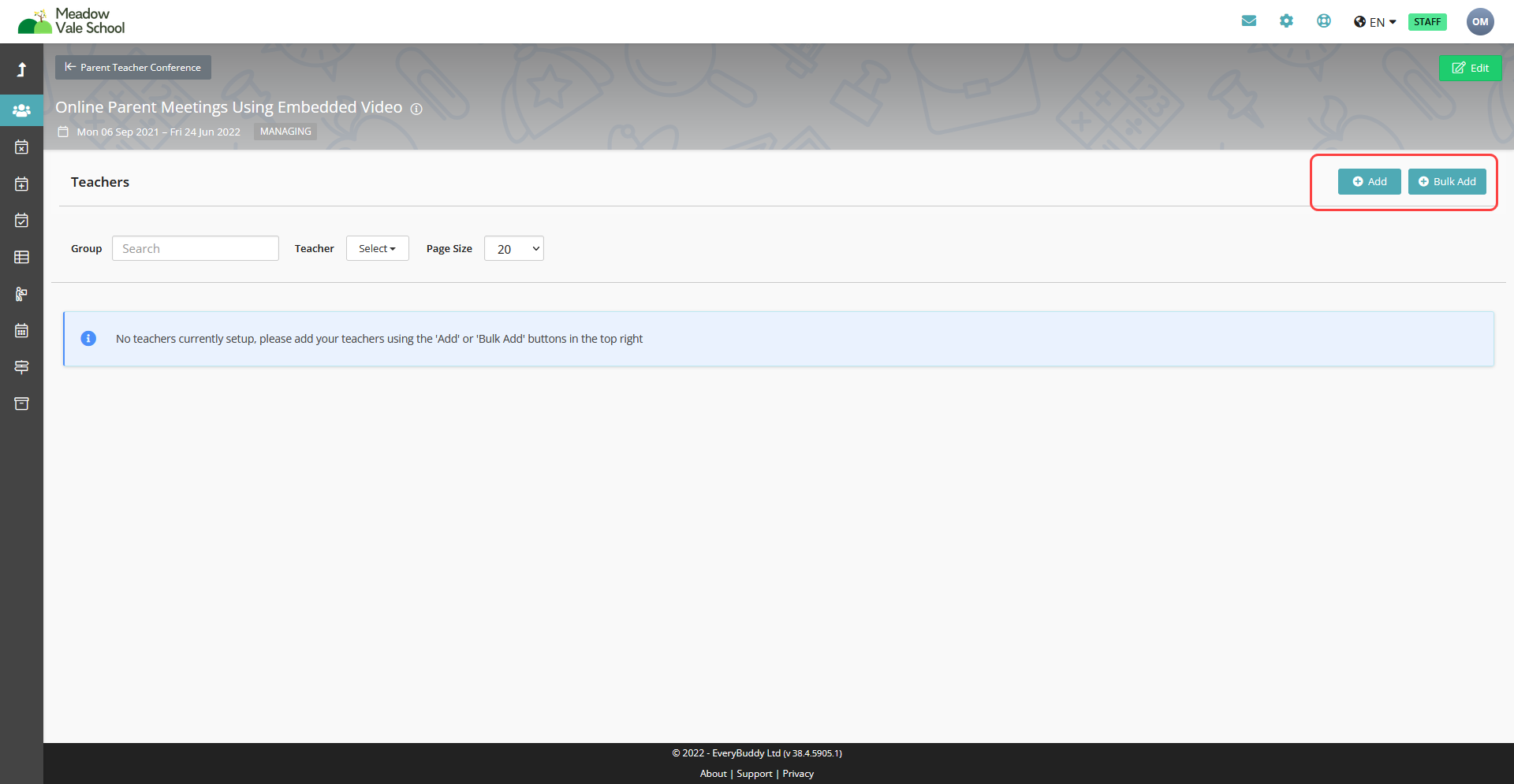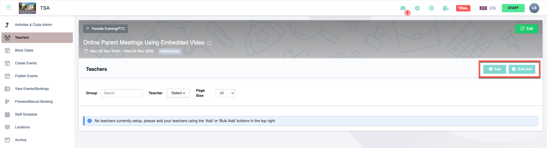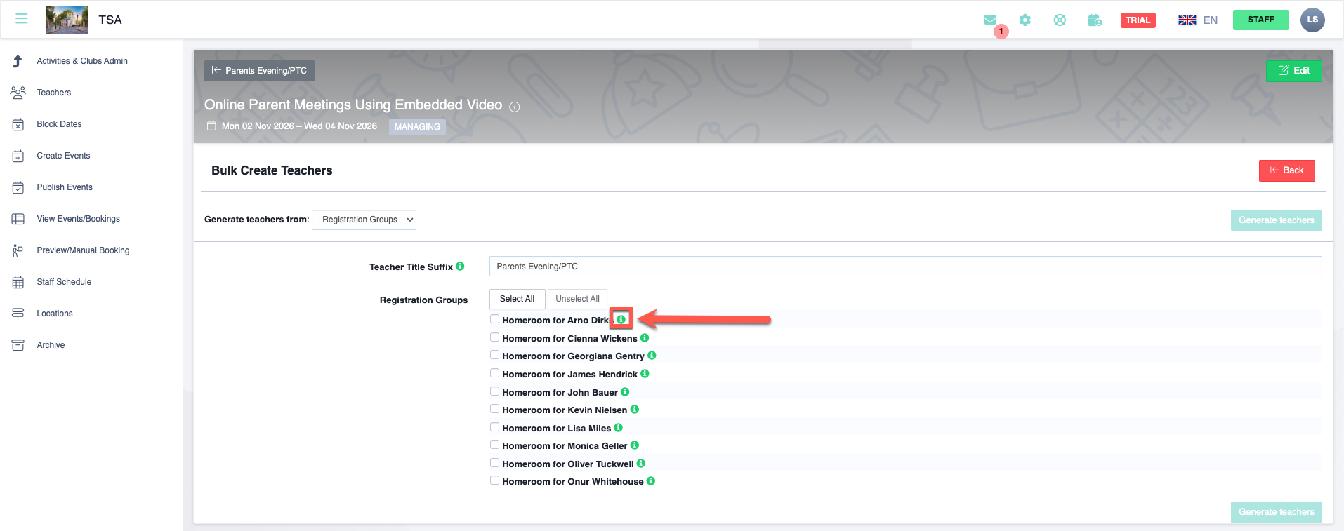 Next, create the teacher groups for subject or registration classes. These can be imported from your Student Information System - contact us if they are not available already in the next step. -
