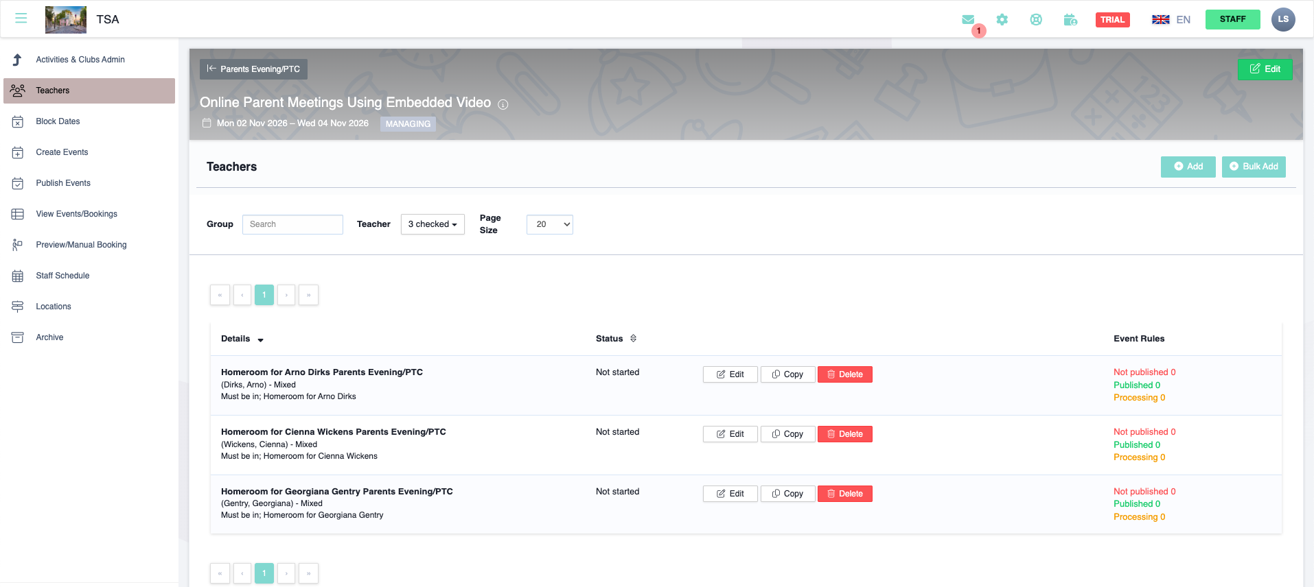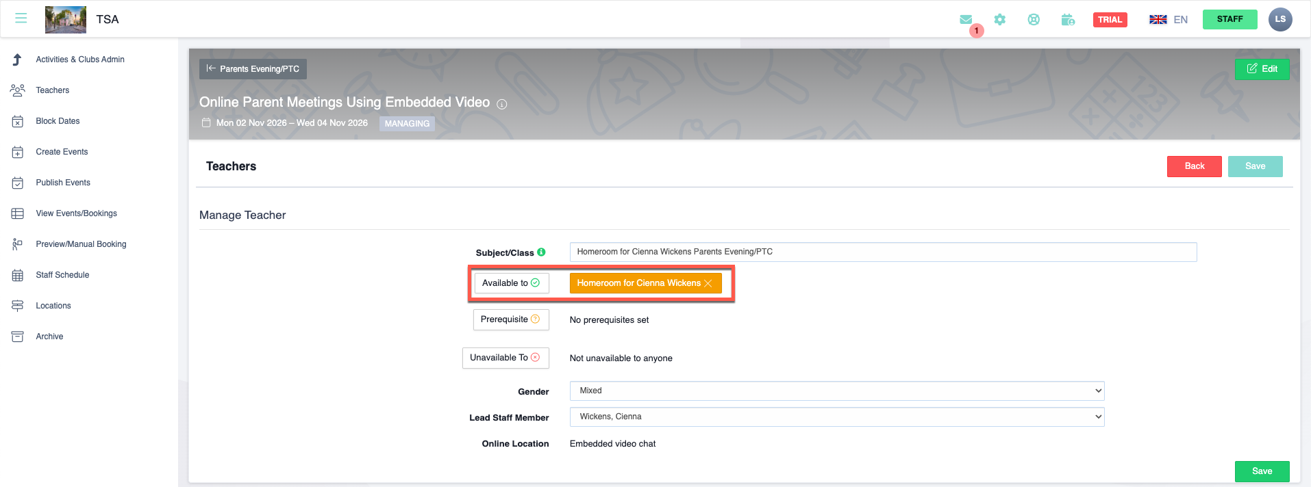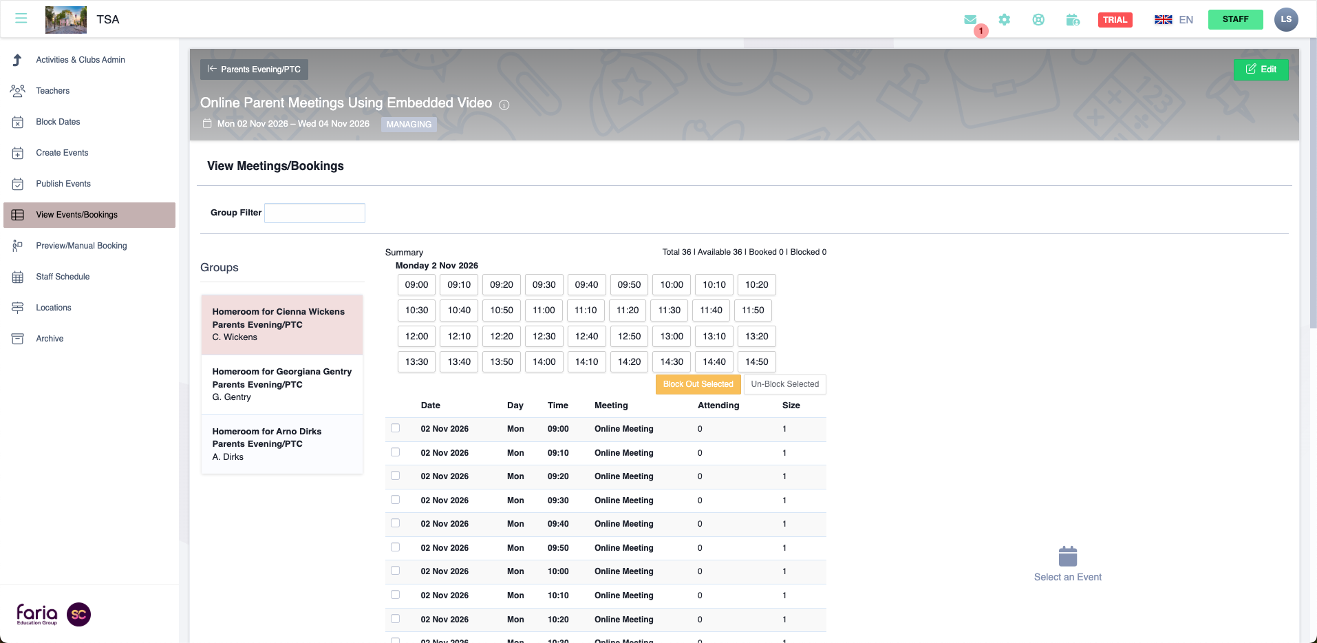 Blocking out Parents Evening / Parent Conference time slots as an Admin