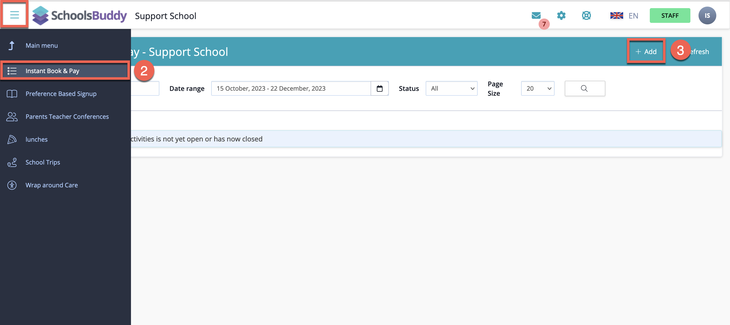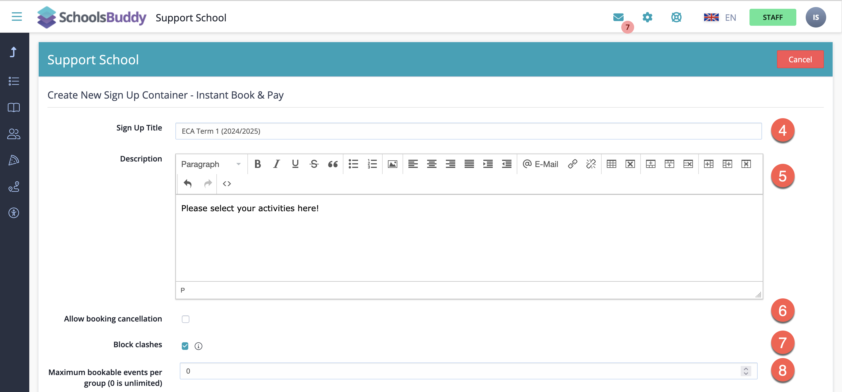 Creating a Container is the first step in setting up your programme in SchoolsBuddy. The container acts as the framework for your sign-up period, bringing together all related activity groups under one set of rules and timelines.