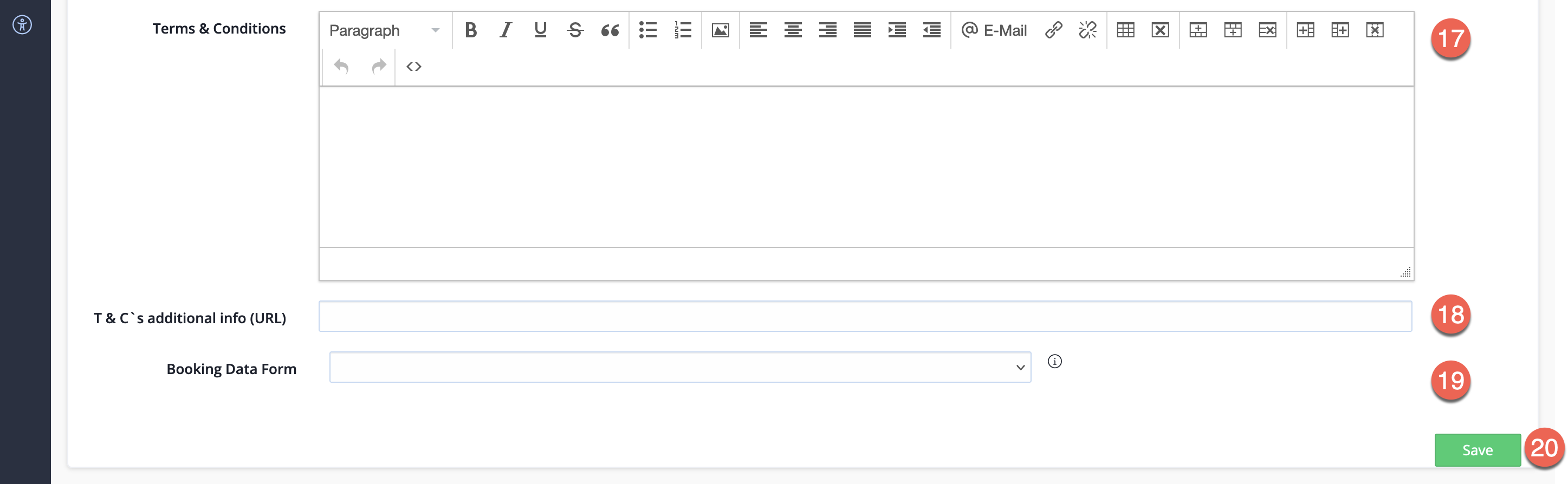 17. Terms & Conditions: You can enter any terms & conditions that apply to all activities.