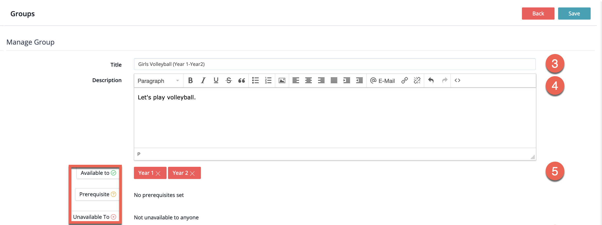 a. Available to: This defines the Years/Groups/Classes that are eligible for the activity/event.