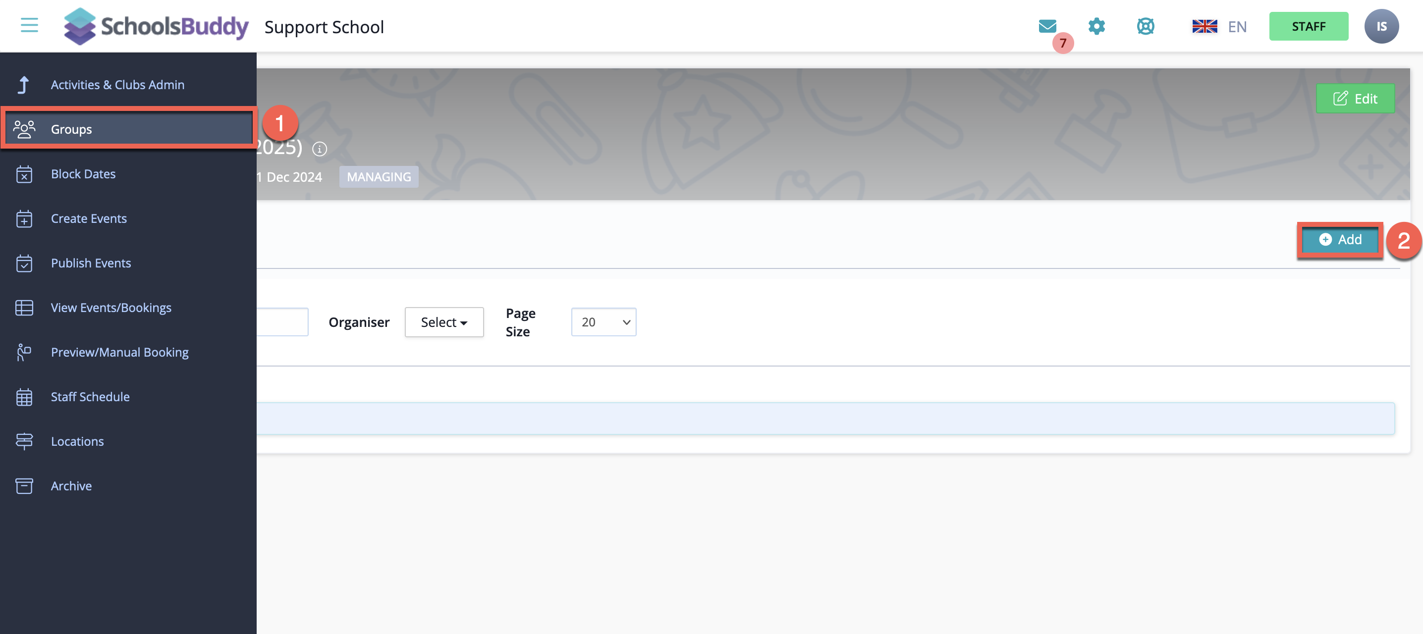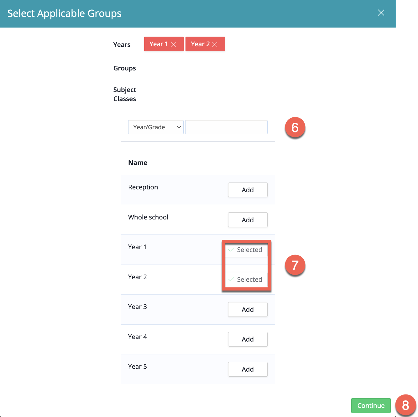 - When the correct Year/Group/Class has been found, select the ‘Add’