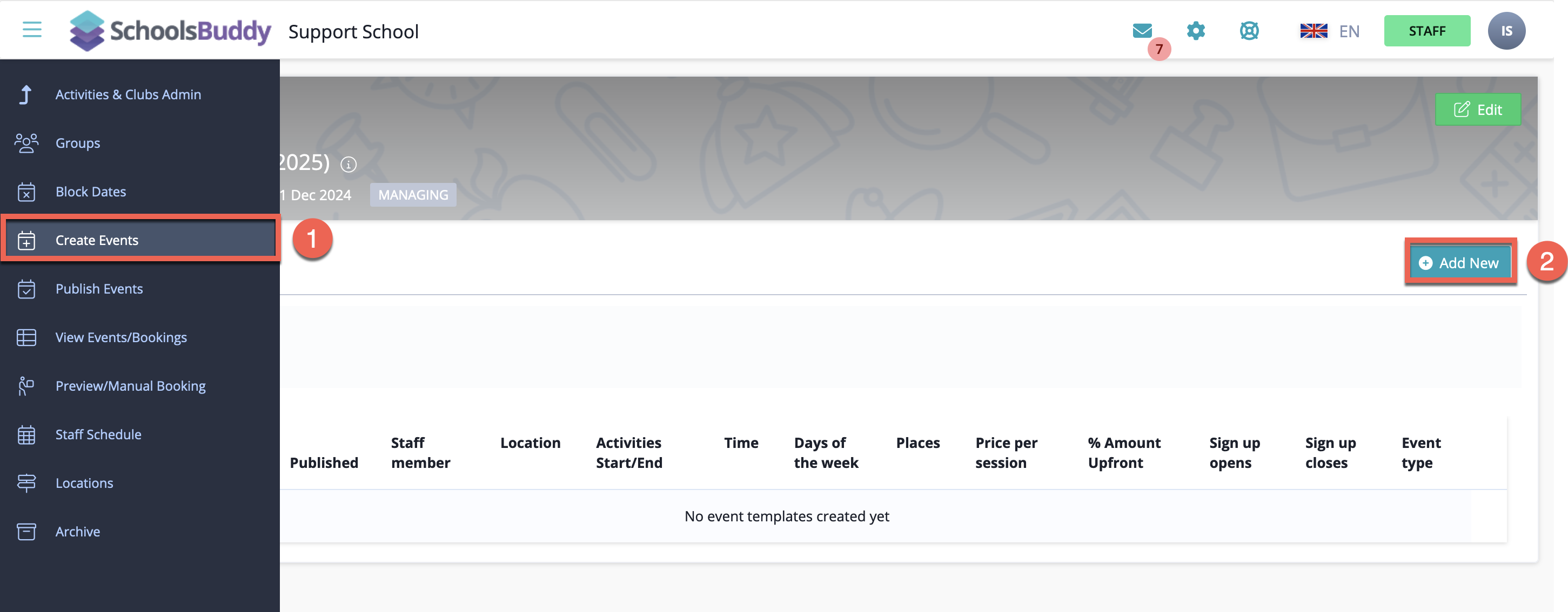 - Event type: Select the event type (In this example it will be After School Clubs).