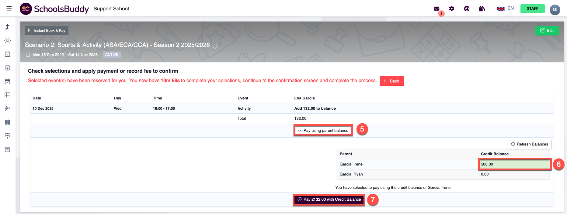 If the parent has no credits, just click Complete to record the fee in the student’s account.