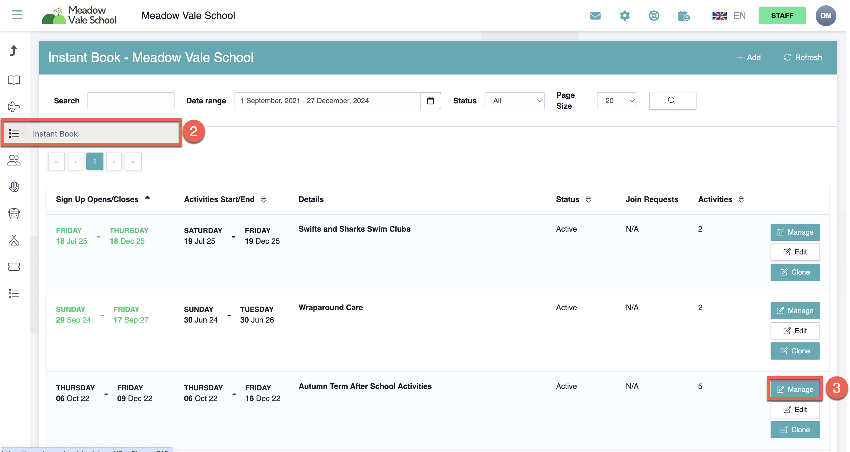 Click the 'Activities & Clubs' tab (this may be labelled differently due to your school's preferences)