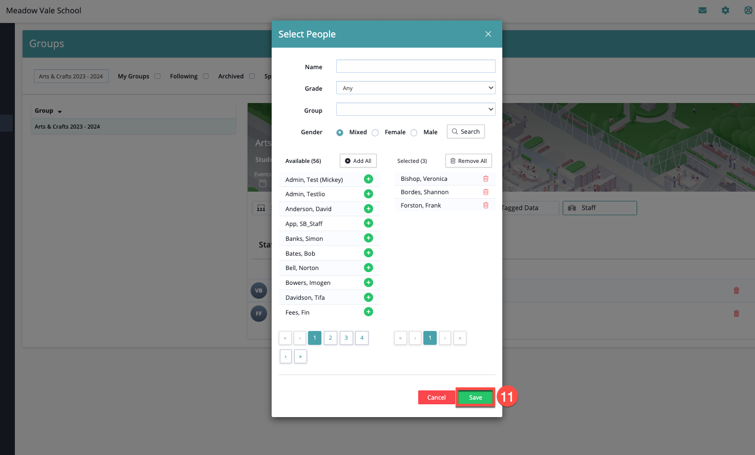 - When the correct staff members have been selected, click the green Save tab.
