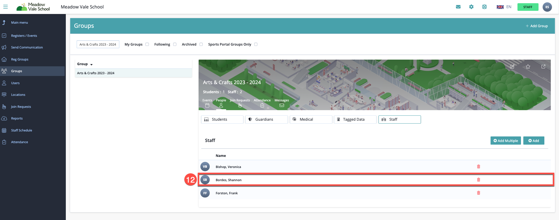 - The staff changes will have now been applied to the group. An example of this is shown in the image below.